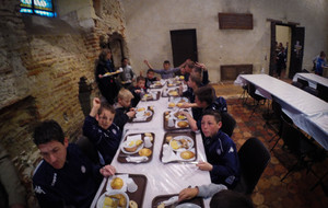 Les Bleus sont sur un nuage et la soirée qui s’ensuit est dans le même ton. Le FCMTL est invité à diner dans le cloître des Jacobins aux côtés des bénévoles et des autres équipes venant de loin.